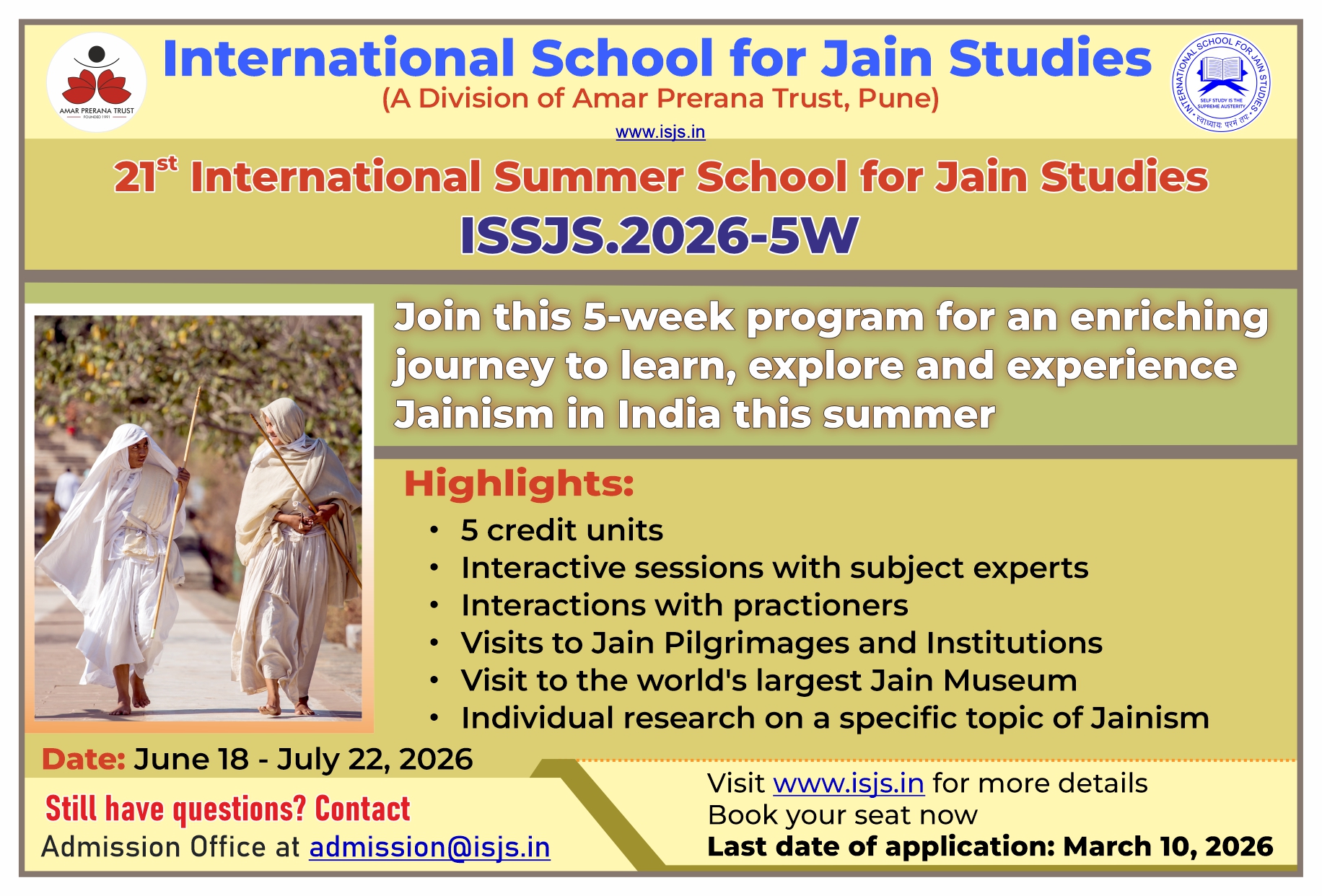 ISJS invites applications for its five-week residential International Summer School for Jain